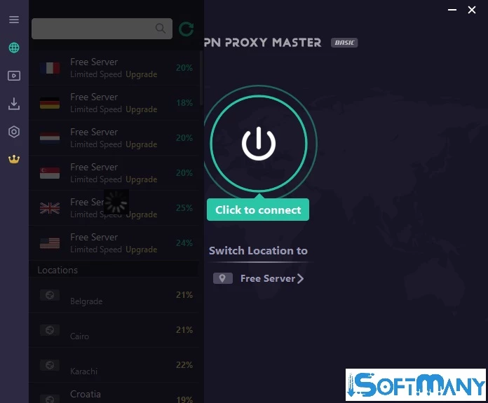 VPN Proxy Master Windows es una conexión de red virtual potente y popular que ofrece una navegación web segura y sin restricciones, ocultando tu identidad real. Permite a los usuarios acceder a su contenido favorito eludiendo diversas restricciones, como la censura de internet, la limitación de ancho de banda por parte del proveedor de servicios de internet y las limitaciones geográficas.